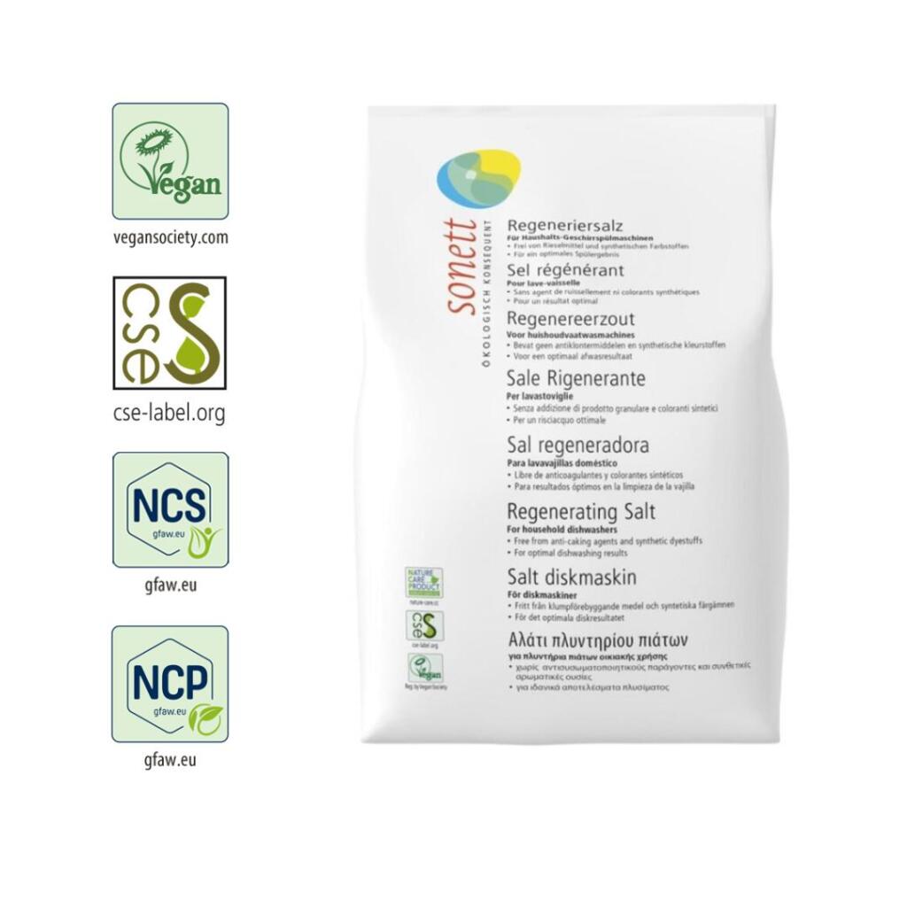 Ova regeneracijska sol prikladna je za sve standardne perilice posuđa. To je čista, kristalizirana evaporirana sol bez ikakvih sredstava za razrijeđivanje, sintetičkih bojila ili drugih dodataka. Sol osigurava sposobnost upijanja ionskog izmjenjivača perilice posuđa i na taj način sprječava stvaranje kamenca na čašama i posuđu.