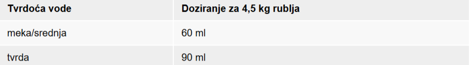 - Ručno pranje: 15 – 30 ml u 5 litara vode