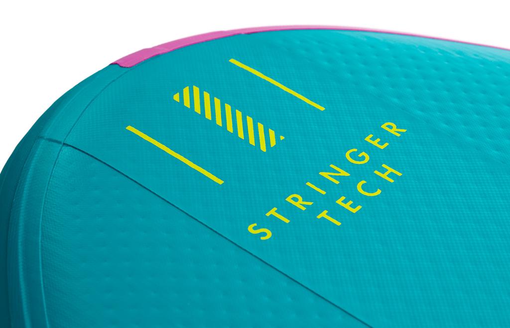 CENTAR STRINGER / TOPLINSKE ZAVARENE TRAKE – OPREMLJEN SA 13CM ŠIROKOM POJAČANOM PVC TRAKOM DUŽ GORNJE I DONJE SREDNJE LINIJE. STRINGER ZNAČAJNO POVEĆAVA KRUTOST PLOČE U ODNOSU NA REDOVNE JEDNOSLOJNE UZRAČNE SUPS. ZAJEDNO SA VANJSKIM TRAKAMA, NOVA KONSTRUKCIJA GARANTUJE UKUPNOST, TRAJNOST I UPRAVLJIVOST.
