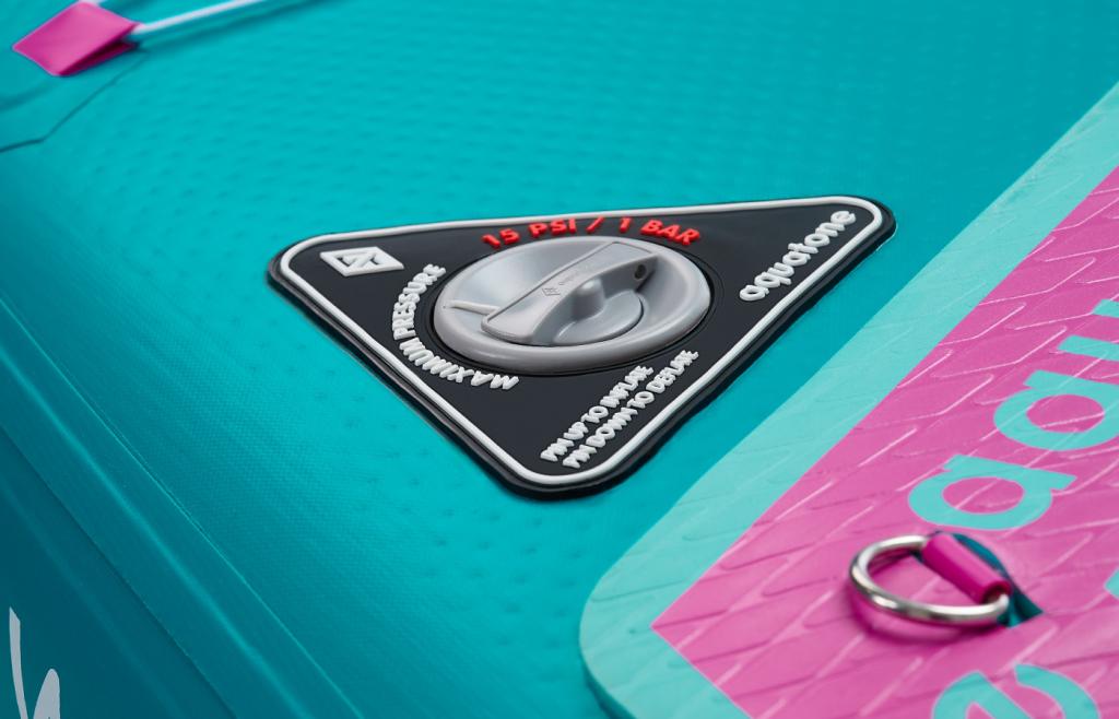 VISOKOTLAČNI VENTIL – PRILAGODILI SMO VENTILI ZA NADUVANJE ZA AQUATONE DASKE. TEHNOLOGIJA VAZDUŠNIH VENTILA VISOKOG PRITISKA JE PRIMJENJENA NA DASKU DA BI SE OSIGURALI MAKSIMALNA KRUTOST I SIGURNOST JAHAČA. VAŽNO: MAKSIMALNI ZRAČNI PRITISAK OVE PLOČE JE 15PSI. SVAKI VIŠI PRITISAK BI MOGAO PRENADUVATI I OŠTETI DASKU.