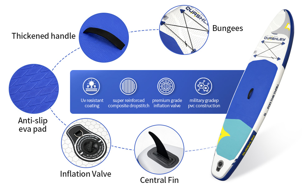 Trostruko ojačani rubovi: Premium PVC materijal sa tri sloja pruža izuzetnu izdržljivost i otpornost na udarce. Iako je ultra lagana, ova SUP daska je napravljena da traje godinama.