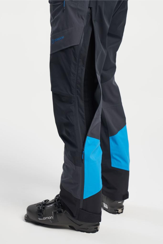 Uslovi za turno skijanje mogu se jako razlikovati, od ekstremne temperature ispod nule, vjetrovitih jutra do sunčanih i toplijih poslijepodneva. Imajući to na umu, pobrinuli smo se da naša kolekcija za turno skijanje bude svestrana, prilagodljiva, lagana i izdržljiva kako bi vam pružila svestranu udobnost i zaštitu od vremenskih nepogoda. Ove izdržljive muške pantalone za turno skijanje su otporne na vjetar i vodu. Napravljene su od naše troslojne MPC Extreme Shell tkanine koja dolazi sa vodootpornošću od 20K, zalijepljenim šavovima, vodoodbojnim patentnim zatvaračima i kopčama za snijeg na gležnjevima. Manžetne za struk i gležnjeve su potpuno podesive kako bi se osiguralo da ostanu na mjestu čak i u ekstremnim uvjetima. Dvosmjerni rajsferšlusi na gležnjevima za ventilaciju i za postavljanje preko cipela ili skijaških cipela, a tu je i kuka za čizme na gležnju koja ih drži na mjestu. Sadrži odvojive i podesive tregere, RECCO Rescue System, dva prednja džepa sa patent zatvaračem i jedan zadnji džep za lak pristup. Nosite izgled – pantalone za turno skijanje su dizajnirane da u potpunosti odgovaraju Tenson turno skijaškoj jakni.