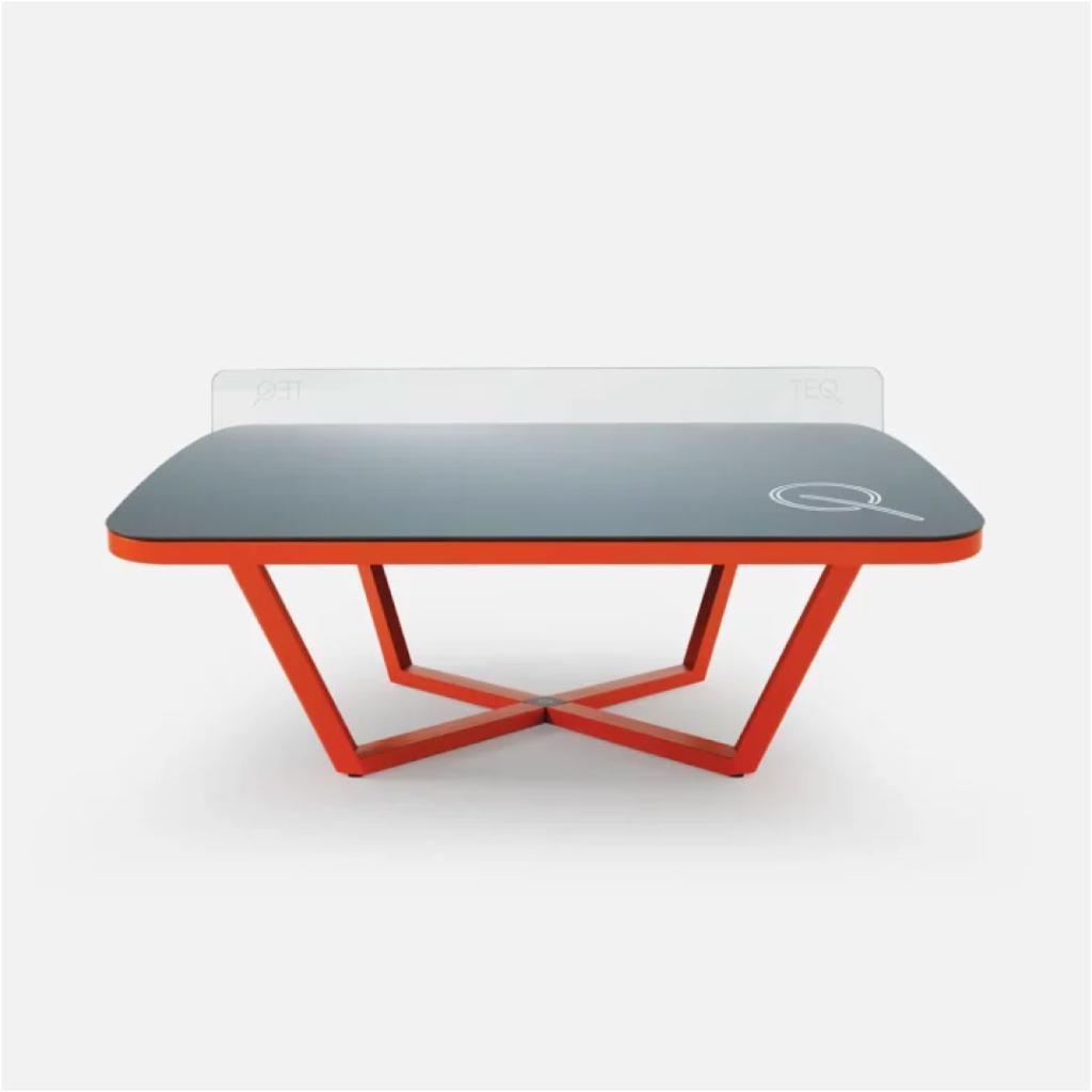 TEQ ONE je revolucionarna sportska komponenta za koju je trebalo više od 2 godine da se napravi. Testiranja i istraživanja koja su sprovedena omogućila su nam da kreiramo jedinstven oblik stola, kao i njegove elemente. Dizajn TEQ ONE isključuje slučajnost, u igri se računaju samo vještine i talenat igrača. Ono što je jedinstveno kod TEQ ONE je to što se može trajno pričvrstiti na tlo, a također i lako demontirati. Zahvaljujući ovom rješenju, ONE se može koristiti na javnim mjestima tokom cijele godine. Noge i okvir stola izrađeni su od nehrđajućeg čelika i prekriveni bojom otpornom na koroziju. Gornjište je izrađeno od izuzetno izdržljivog HPL laminata (High Pressure Laminate).