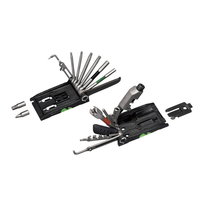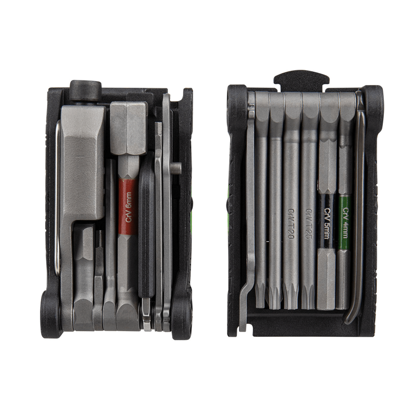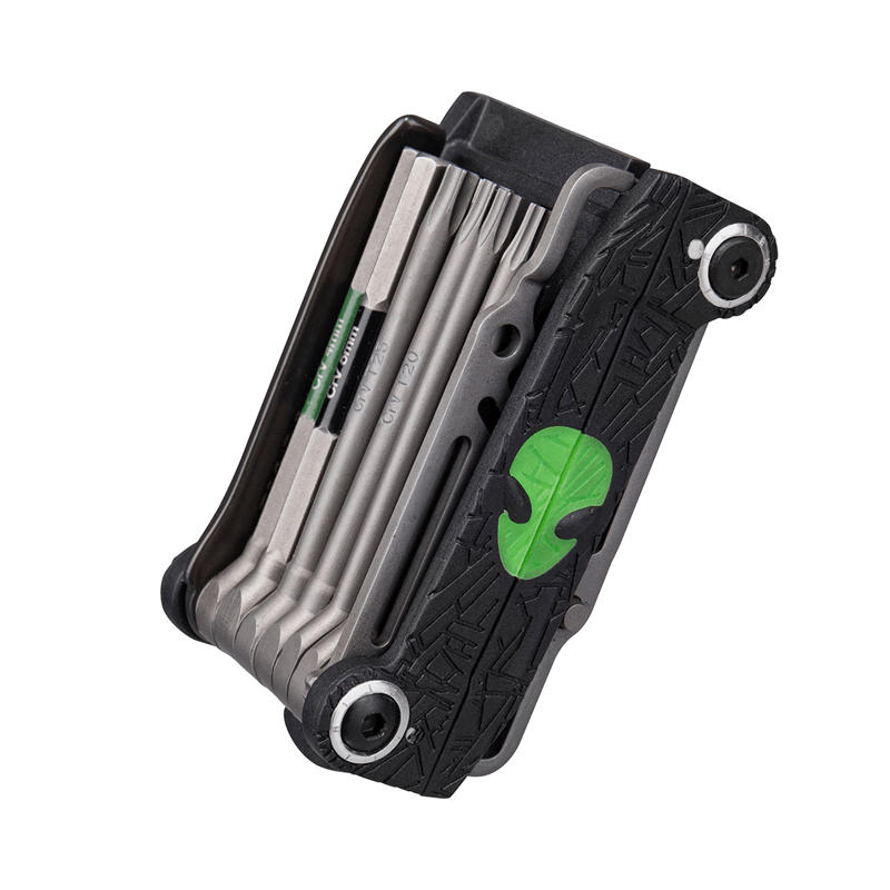 Evolucija svjetski poznatog ALiEN alata transformira X u vrhunski alat za sklapanje profesionalnog kvaliteta sa 34 funkcije. ALiEN X ima T10 / T15 / T20 / T25 / T30 Torx® alate i dodaje klešta za glavnu kariku za upotrebu na lancima sa jednom ili više brzina opremljenim glavnom karikom. Dvodijelni dizajn omogućava lak pristup i potpunu upotrebu svih alata i dodaje polugu prilikom zatezanja vijaka. Uključuje alate za samozatezanje i najlonsku vrećicu. FUNKCIJE: 34. ALATI: 1,5-L / 2-L / 2,5 / 3 / 4 / 5 / 6 / 8 mm imbus ključevi, 10 imbus ključ; T10 / T15 / T20 / T25 Torx® ključevi, T30 Torx® nasadni ključ; 14G / 15G / Mavic M7 / Shimano® ključevi za krakove 4,5 mm; Alat za lanac od CrMo čelika*, kuka za lanac, kliješta za glavnu kariku od CrMo čelika**; Super tvrda anodizirana ručica za gumu***; #2 Phillips utičnice, nazubljeni nož/pila; Presta alat za jezgro ventila, odstojnik diskova od polimera inženjerskog kvaliteta; MATERIJAL ALATAKrom vanadijum čelik; BODYEngineering grade polimer; BAG1800 denier HD najlon (TRK-T025); DODATNE KARAKTERISTIKE: Sekundarna ograda za lanac, razbijač igle za lanac, pretinac za klinove lanca, pretinac za odlaganje glavne karike, dvodijelni dizajn, proširiv za polugu, samozatezni alat i zaštitni poklopac noža; VELIČINA: 7,8 x 4,5 x 4 cm / 3,1” x 1,8” x 1,6”; TEŽINA: 204 g / 7,2 oz;