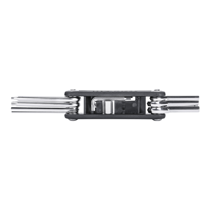 Sklopivi alat s 11 funkcija koji se lako može nositi s većinom popravaka. Savršeno za svakodnevnu vožnju biciklom. Ažurirani dizajn za učvršćivanje šesterokutnog nastavka od 8 mm. Uključen je samozatezni ključ L-tipa T20 / 2,5 mm. MATERIJAL ALATA: krom-vanadij čelik; MATERIJAL TIJELA: Polimer tehničke kvalitete; VELIČINA: 9,5 x 2,9 x 1,9 cm / 3,7” x 1,1” x 0,7”; TEŽINA: 112 g / 3,95 oz;