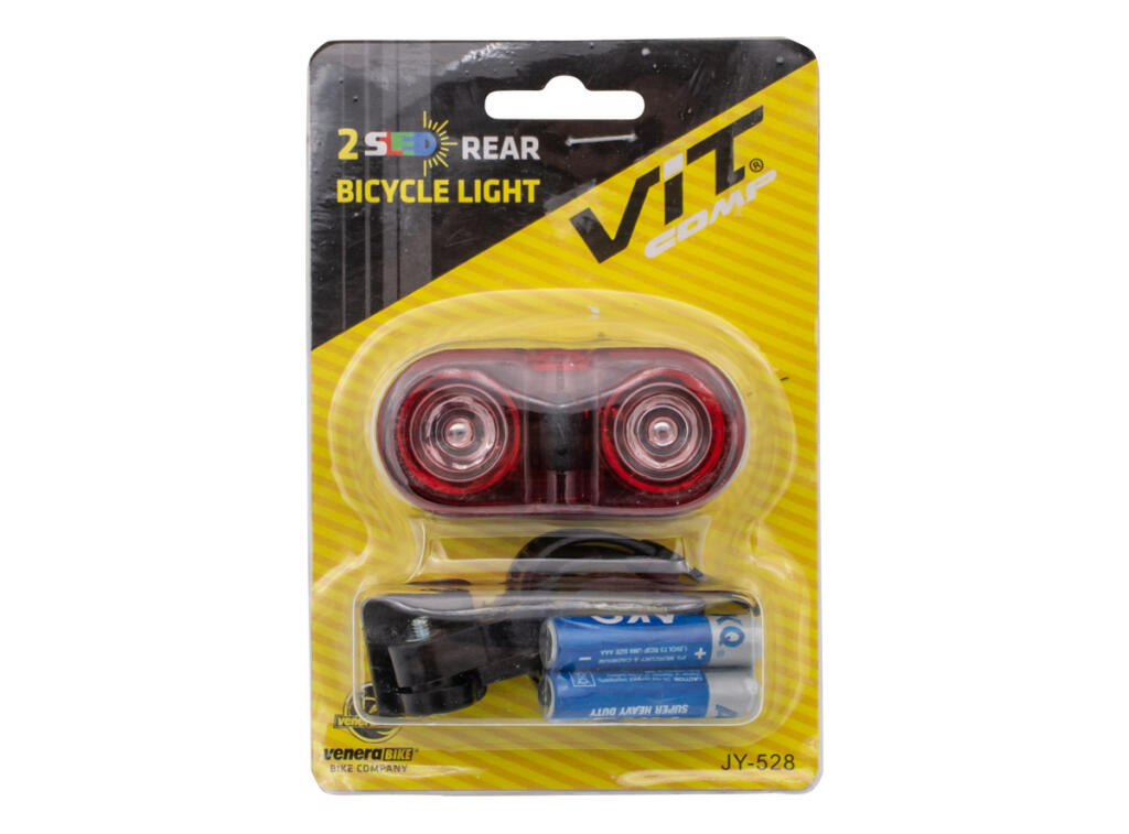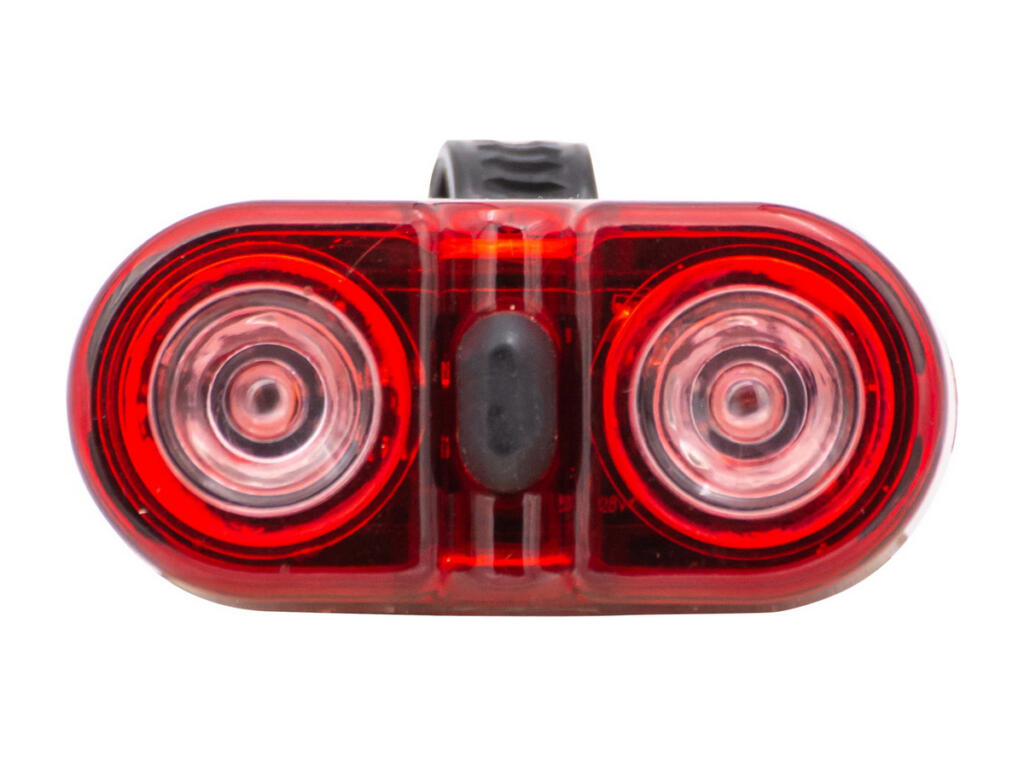 Zadnje svjetlo sa 2×0.5W crvenim LED diodama i vodootpornim kućištem. Funkcije: naizmjenično treptanje, stalno svjetlo i isključeno. Pogodno je za montažu na cijevi sjedišta bicikla promjera 25.4-31.8mm.