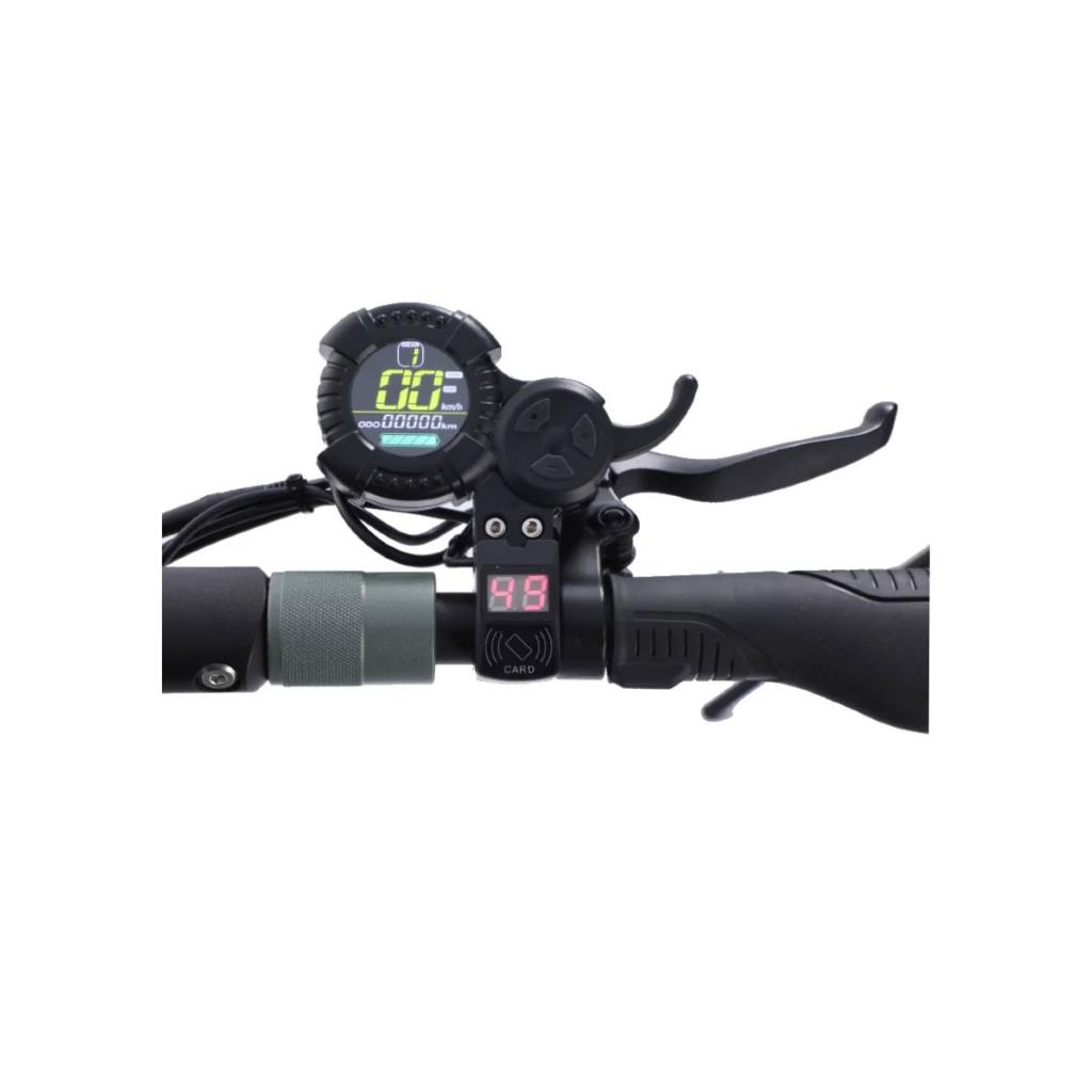 Što se tiče udobnosti i upravljivosti, vrlo je sličan skuteru Kaabo Mantis ili električnom skuteru Zero 10x, budući da uključuje iste sisteme suspenzije u manjoj veličini. Ali ovdje nije kraj, na njegovoj upravljačkoj ploči pronaći ćete sve potrebne kontrole za upravljanje funkcijama romobila, od LCD zaslona do gumba sirene itd.