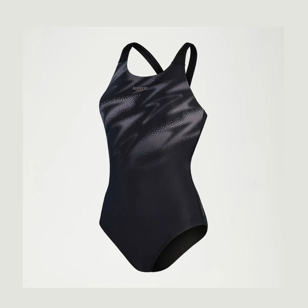 Dajte izjavu u otiscima Boom logotipa. Slaveći Speedo brend, naš moderni crni Hyperboom Muscleback kupaći kostim ima eterični izgled našeg kultnog Boom logotipa. Dizajn mišića leđa i srednje izrezana noga nude fleksibilnost i slobodu kretanja, tako da možete plivati udobno. Odijelo je postavljeno sprijeda radi skromnosti i udobnosti. Napravljen od naše ECO Endurance+ tkanine, brzo se suši i 100% otporan na hlor. Osim toga, jedna od niti u ECO Endurance+ tkanini je napravljena od 100% otpada nakon upotrebe, kao što su reciklirane plastične boce.